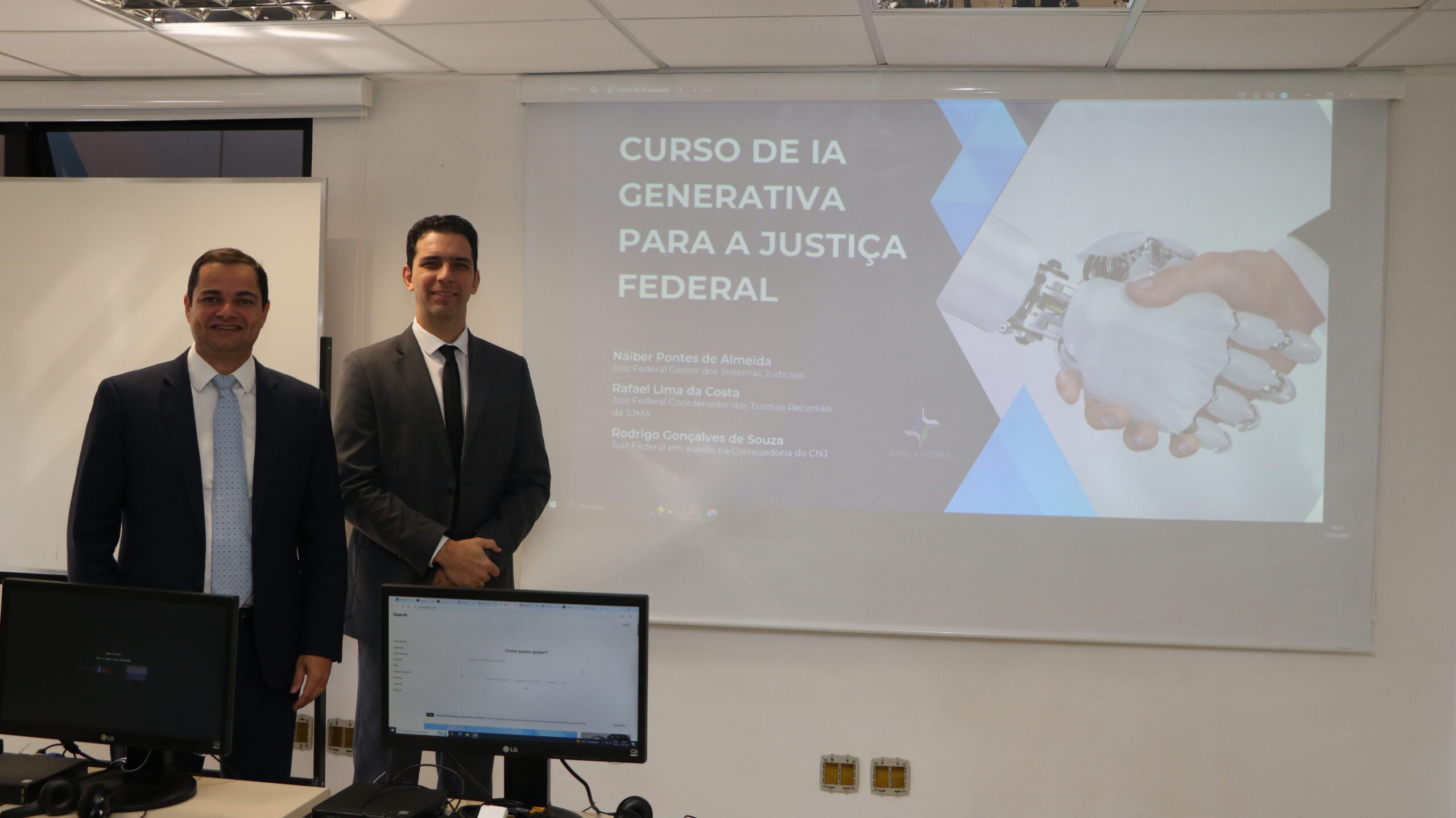 A oficina foi coordenada pelos juízes federais Rodrigo Gonçalves de Souza e Náiber Pontes de Almeida, ambos do TRF da 1ª Região e com vasta experiência em projetos de inteligência artificial no Judiciário. O conteúdo foi estruturado para atender especialmente quem está dando os primeiros passos no uso de IA generativa, com foco na estruturação de prompts, prática essencial para a criação de soluções eficientes e seguras com ferramentas como o ChatGPT.