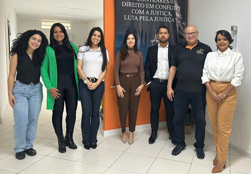 Da esq. para a dir.: vereador Tiago Lemos; advogada Bennaya Cristina Ramos; servidor da Coger, Renner Marzano; servidora responsável pela UAA de Caraí, Joyce Soares; vereadora Amina Ribeiro; advogada Jéssica Marcela Alves; bacharel em direito, Débora Campos; vereador José Miguel Gomes